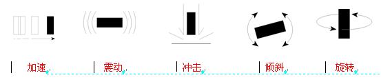 加速、震動(dòng)、沖擊、傾斜和旋轉(zhuǎn)——除了旋轉(zhuǎn)外,其它四種運(yùn)動(dòng)實(shí)事上都是加速度在不同時(shí)間段的表現(xiàn)。然而,我們?nèi)祟愂菬o法靠直覺來做出運(yùn)動(dòng)狀態(tài)的判斷,例如震動(dòng)是加速還是減速。分別地考慮每一種模式可以幫助我們想出更多可能的應(yīng)用。