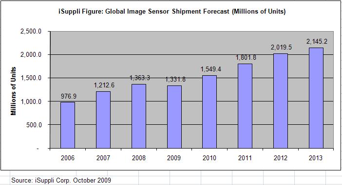 iSuppli預(yù)測2009年,13億顆影像傳感器被運往世界各地,而2012年,市場出貨量將跨越20億顆的門檻。