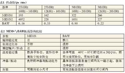 該研究采用已有測量技術(shù)對商用BAW與MEMS振蕩器的多種不同電特性進(jìn)行了比較,在此基礎(chǔ)上進(jìn)行了部分討論,并在表2中做了相應(yīng)總結(jié)。結(jié)果表明,兩種技術(shù)是不可互換的。頻率偏差、MEMS振蕩器的低Q值與數(shù)字溫度補(bǔ)償都造成了許多應(yīng)用中不可接受的頻率波動。