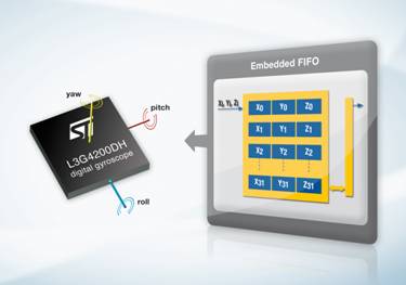 全球最大的消費電子和便攜設備MEMS傳感器供應商意法半導體進一步擴大運動傳感器產(chǎn)品陣容,推出一款高性能的三軸數(shù)字輸出陀螺儀。新產(chǎn)品內(nèi)嵌一個FIFO(先入先出)存儲器模塊,可實現(xiàn)智能化程度更高的電源管理。