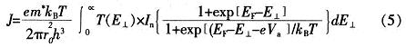 式中:e為電子電荷的大小,m*為GoAs電子的有效質(zhì)量,kB為玻爾茲曼常數(shù),T為絕對溫度,EF為費(fèi)米能級,E1為入射電子垂直(縱向)能量。