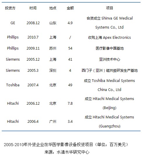 對(duì)外資企業(yè)來說,由于歐美日等成熟市場趨于飽和,中、印等飛速增長的新興市場將是未來增長動(dòng)力。外資企業(yè)一方面在中國加大投資并購力度,建設(shè)生產(chǎn)研發(fā)基地,提高產(chǎn)能,整合全球供應(yīng)鏈;另一方面根據(jù)中國市場的需求推出普及型產(chǎn)品。針對(duì)中國醫(yī)改重點(diǎn)投入基層醫(yī)療機(jī)構(gòu),GE、西門子、飛利浦等都以基層醫(yī)療市場戰(zhàn)略積極應(yīng)對(duì),如GE整合新華醫(yī)療渠道、西門子發(fā)展“SMART”戰(zhàn)略等。