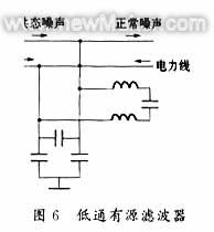 通常,經(jīng)典濾波器用得最多。濾波電路可以由無源元件R、L、C組成,如圖5所示的線路濾波器;也可以包含有源元件(如圖6所示),它的優(yōu)點主要是具有一定的信號放大和帶負(fù)載能力。濾波電路從功能上又可分為四類:低通(LP)、高通(HP)、帶通(BP)、帶阻(BS)濾波器。每一種又有模擬(AF)與數(shù)字(DF)濾波器兩種形式。由于傳感器信號一般為緩慢變化的信號,故選用低通濾波器抑止高頻噪聲信號最多。通常如巴特沃斯濾波器、切比雪夫濾波器、橢圓濾波器等。常用低通濾波電路如圖6所示。