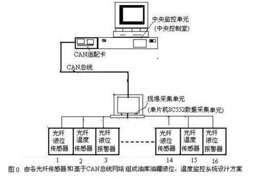 光纖傳感器與基于CAN總線網(wǎng)絡(luò)組成的油庫油罐的液位、溫度信號實時監(jiān)測系統(tǒng)設(shè)計方案