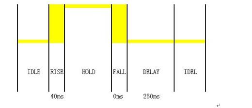 圖4是一個觸摸按鍵應(yīng)用中一次典型的按鍵波形,每個按鍵按下后,系統(tǒng)都需輸出對應(yīng)的電壓值以供其他系統(tǒng)檢測。該應(yīng)用要求響應(yīng)時間小于等于40ms,當按鍵被長按時,需要一直輸出按鍵電壓,即使按鍵釋放后,仍需250ms時間保持原有按鍵電壓,之后停止輸出按鍵電壓,進入空閑狀態(tài)。系統(tǒng)共包含12個觸摸按鍵,當多個按鍵被同時按下時,系統(tǒng)不響應(yīng)。系統(tǒng)低功耗設(shè)計要求為,系統(tǒng)待機時沒有按鍵操作的平均電流應(yīng)至少小于1mA。