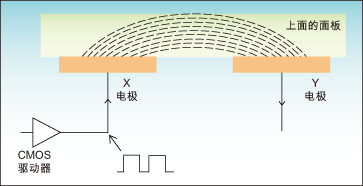 電容式觸控技術(shù)在廚房設(shè)備中的應(yīng)用已經(jīng)有幾年了,例如在烤箱和煎鍋的不透明玻璃面板后面采用分離按鍵實(shí)現(xiàn)。這些觸摸控制鍵逐漸替代了機(jī)械按鍵,因?yàn)楹笳呔哂惺褂脡勖?、不夠衛(wèi)生等方面的問題,而且還有在面板上開孔安裝按鍵的相關(guān)成本,圖1是電容式感應(yīng)技術(shù)原理示意圖。