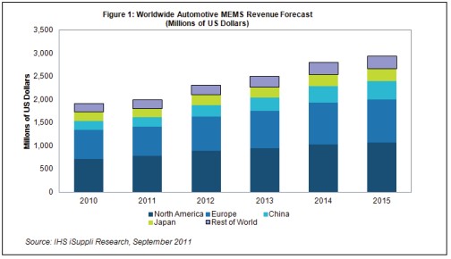 - 2010-2015年中國(guó)仍將是全球第三大汽車MEMS傳感器用戶