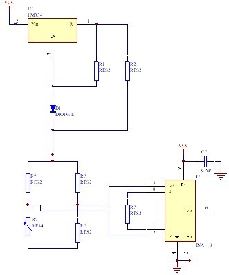 本文采用惠斯通電橋?yàn)V出微壓力傳感器輸出的模擬變量,然后用INA118放大器將此信號(hào)放大,用7715A/D 進(jìn)行模數(shù)轉(zhuǎn)換,將轉(zhuǎn)換完成的數(shù)字量經(jīng)單片機(jī)處理,最后由LCD 將其顯示,采用LM334 做的精密5 V 恒流源為電橋電路供電,完成了微壓力傳感器接口電路設(shè)計(jì),既能保證檢測的實(shí)時(shí)性,也能提高測量精度。