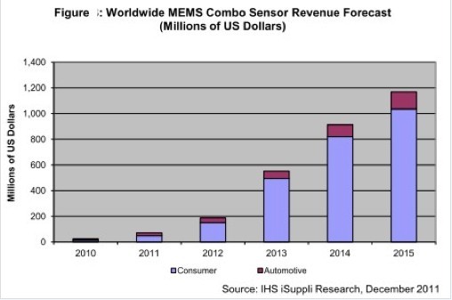 - MEMS組合傳感器的銷(xiāo)售額到2015年將接近12億美元