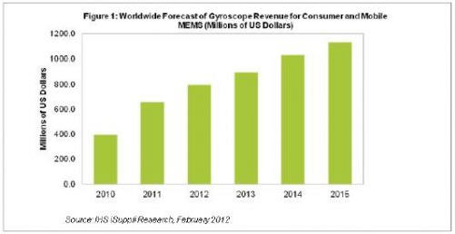 據(jù)IHS iSuppli公司的MEMS市場(chǎng)追蹤報(bào)告,由于蘋(píng)果iPhone和iPad去年第四季度創(chuàng)出最高銷(xiāo)量紀(jì)錄,2011年陀螺儀成為消費(fèi)與移動(dòng)MEMS領(lǐng)域中的創(chuàng)收大戶(hù)。