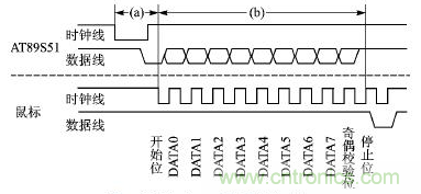 鼠標履行一種雙向同步串行通信協(xié)議,在時鐘信號的作用下串行發(fā)送或者接受數(shù)據(jù)。通常情況下,單片機在總線上具有總線控制優(yōu)先權(quán),可在任何時候抑制來自于鼠標的通信。從鼠標到單片機的數(shù)據(jù)在時鐘的下降沿被讀取,相反,單片機到鼠標的數(shù)據(jù)在時鐘的上升沿被讀取。時鐘信號總由鼠標內(nèi)部芯片提供,時鐘頻率一般在10~20KHz。