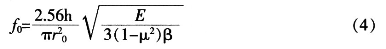經(jīng)過分析,綜合考慮設(shè)計(jì)的要求,初步設(shè)定:h=20μm,R=200μm。其固有頻率可以按下式計(jì)算:
