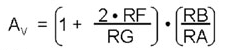 其中VREF代表ADC的參考電壓,“Sensor FS”是傳感器的滿刻度輸出值。假設(shè)電阻完美匹配,那么儀表放大器的增益等于: