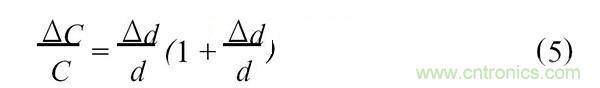 最后要說明的是關(guān)于非線性的問題。由下圖我們可以看到變間隙式電容傳感器相對輸出表達式為: