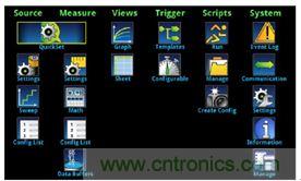 吉時(shí)利2450型交互式數(shù)字源表SMU儀器簡(jiǎn)化了非傳統(tǒng)用戶(hù)的學(xué)習(xí)曲線,使之從使用多層菜單結(jié)構(gòu)和多功能按鈕配置功能的繁瑣工作中解脫出來(lái)。2450型儀器使用基于圖標(biāo)的平面菜單系統(tǒng),就像在智能消費(fèi)電子產(chǎn)品中使用的菜單系統(tǒng)一樣簡(jiǎn)單,如平板電腦或智能手機(jī)上顯示的應(yīng)用圖標(biāo)排列。