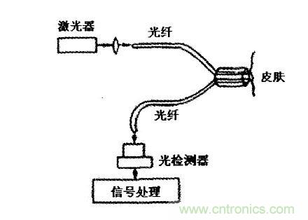 2、血流速度測(cè)量多普勒型光纖速度傳感器測(cè)量皮下組織血流速度的示意見圖4此裝置利用了光纖的端面反射現(xiàn)象,測(cè)量系統(tǒng)結(jié)構(gòu)簡(jiǎn)單。