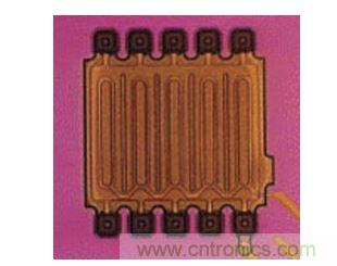 電容式壓力傳感器利用MEMS技術(shù)在硅片上制造出橫隔柵狀,上下二根橫隔柵成為一組電容式壓力傳感器,上橫隔柵受壓力作用向下位移,改變了上下二根橫隔柵的間距,也就改變了板間電容量的大小,即△壓力=△電容量(圖5)。電容式壓力傳感器實(shí)物如圖6。