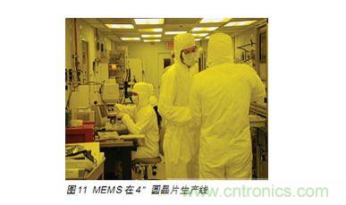 與傳統(tǒng)IC行業(yè)注重二維靜止的電路設(shè)計(jì)不同,MEMS以理論力學(xué)為基礎(chǔ),結(jié)合電路知識設(shè)計(jì)三維動態(tài)產(chǎn)品。對于在微米尺度進(jìn)行機(jī)械設(shè)計(jì)會更多地依靠經(jīng)驗(yàn),設(shè)計(jì)開發(fā)工具(Ansys)也與傳統(tǒng)IC(如EDA)不同。MEMS加工除了使用大量傳統(tǒng)的IC工藝,還需要一些特殊工藝,如雙面刻蝕,雙面光刻等。MEMS比較傳統(tǒng)IC,工藝簡單,光刻步驟少,MEMS生產(chǎn)的一些非標(biāo)準(zhǔn)的特殊工藝,工藝參數(shù)需要按照產(chǎn)品的要求來進(jìn)行調(diào)整。由于需要產(chǎn)品設(shè)計(jì)、工藝設(shè)計(jì)和生產(chǎn)三方面的密切配合,IDM的模式要優(yōu)于Fabless+Foundry的模式。MEMS對封裝技術(shù)的要求很高。傳統(tǒng)半導(dǎo)體廠商的4〃生產(chǎn)線正面臨淘汰,即使用來生產(chǎn)LDO,其利潤也非常低,但是,如果生產(chǎn)MEMS,則可獲得較高的利潤。4〃線上的每一個(gè)圓晶片可生產(chǎn)合格的MEMS壓力傳感器Die5-6K個(gè),每個(gè)出售后,可獲成本7-10倍的毛利(如圖10)。轉(zhuǎn)產(chǎn)MEMS對廠家的工藝要求改動不大,新增輔助設(shè)備有限,投資少、效益高。MEMS芯片與IC芯片整合封裝是集成電路技術(shù)發(fā)展的新趨勢,也是傳統(tǒng)IC廠商的新機(jī)遇。圖11是MEMS在4〃圓晶片生產(chǎn)線上。