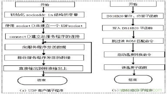 根據(jù)DS18B20的通訊協(xié)議,主機(jī)(單片機(jī))控制DS18B20完成溫度轉(zhuǎn)換必須經(jīng)過三個步驟:每一次讀寫之前都要對DS18B20進(jìn)行復(fù)位操作,復(fù) 位成功后發(fā)送一條ROM指令,最后發(fā)送RAM指令,這樣才能對DS18B20進(jìn)行預(yù)定的操作。該流程框圖如圖2(b)所示。