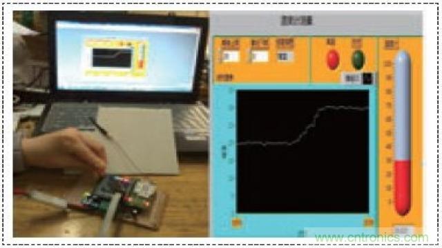 本系統(tǒng)對一個溫度傳感器傳輸?shù)臄?shù)據(jù)進(jìn)行了測試,得到的結(jié)果和溫度及所測的結(jié)果非常接近,但是其比溫度計(jì)的靈敏度和分辨率要高很多。另外系統(tǒng)工作也非常穩(wěn)定,環(huán)境的影響也很小。圖3是測試的結(jié)果,其中20℃的時候?yàn)槭覝兀瑴囟壬呤怯捎谟檬钟|摸傳感器所致。