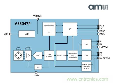 【導(dǎo)讀】近日,ams發(fā)布47系列最新磁性旋轉(zhuǎn)位置傳感器AS5047P。該傳感器可實現(xiàn)高轉(zhuǎn)速下、全溫度范圍內(nèi)的最高精確度,可用于電機與運動控制。AS5047P具備遞增式ABI輸出,性能更優(yōu)于電機及運動控制系統(tǒng)中的光學編碼器及旋轉(zhuǎn)變壓器,在實現(xiàn)高精度性能的同時能降低系統(tǒng)成本。