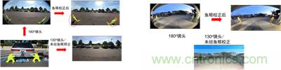 圖2:ASX344AT魚眼畸變校正示例(左:白天;右:夜間)