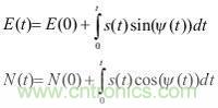 其中,(t)是位移,(t)是航向。在行人步伐間隔期間,假設(shè)速度和航向是常量??紤]到折線(xiàn)法,方程式1可改寫(xiě)成: