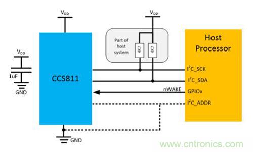 CCS811數(shù)字VOC傳感器應(yīng)用框圖
