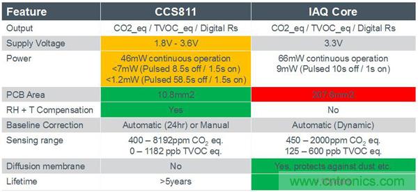 CCS811和IAQ Core性能比較