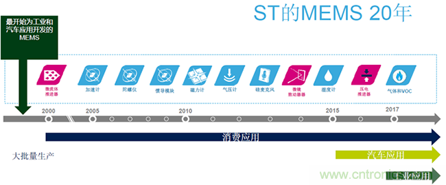 在過去的20年,消費類應用使不同類別的MEMS傳感器實現(xiàn)了從雛形,到大批量生產(chǎn)、直至大批量應用的過程,這些傳感器包括加速計、陀螺儀、慣導模塊、磁力計、氣壓計、溫度計、氣體壓力計、以及最近幾年越來越多的環(huán)境類傳感器。