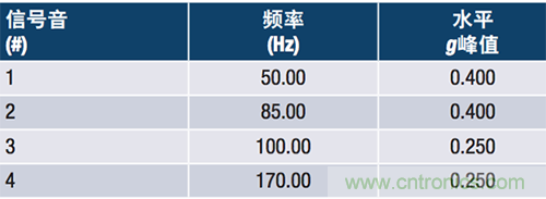 在振動測試儀上重建了一個實際場景,例如在基于振動的狀態(tài)監(jiān)控中所述的場景,以便利用已知激勵信號比較器件。本例展示了一臺以5100 rpm (85 Hz)運轉(zhuǎn)的汽輪機和一臺未對準(zhǔn)的3000rpm (50 Hz)同步發(fā)電機的振動水平。該場景說明的是采用隨機振動測試模式時,振動系統(tǒng)經(jīng)編程所產(chǎn)生的頻率和振幅。表1列出了兩個器件在目標(biāo)頻率的振幅測量結(jié)果。