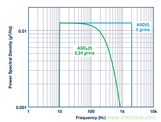 公式10通過線性加速度參數(shù)乘以ASDF (f)曲線幅值2.24 g rms,可估算產(chǎn)生的噪聲電平為0.02°/s (rms)。此噪聲電平比通過公式5得到的0.045°/s (rms)低55%,公式5的方法未采用頻譜項(xiàng)評估此噪聲源。這種改善是采用頻譜項(xiàng)定義振動(dòng)曲線以獲取值的一個(gè)示例。