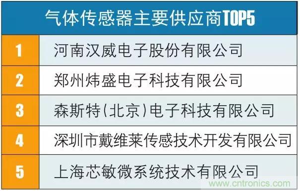 國內方面,主要的氣體傳感器企業(yè)有煒盛科技、河南漢威、森斯特、深圳戴維萊和上海芯敏等。其中,煒盛科技是目前國內唯一能生產半導體類、催化燃燒類、電化學類和紅外光學類等四大類氣體傳感器的企業(yè)。為國內氣體傳感器絕對龍頭,占據(jù)60-70%銷售量。檢測氣體種類覆蓋絕大多數(shù)可燃氣體和多數(shù)毒性氣體,廣泛應用于工業(yè)、礦業(yè)、等領域。(記者:譚倫)