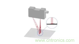 根據(jù)三角測量原理,通過測量反射光的入射角,可計算出傳感器到物體的距離。入射角隨距離而變化,因而激光點在接收器上的位置也相應變化。