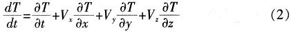 三維直角坐標(biāo)系中的瞬態(tài)溫度場(chǎng)場(chǎng)變量T(x,y,z,t)滿足:
