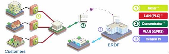 圖3:法國(guó)EDF旗下公司法國(guó)配電公司(ERDF)的Linky項(xiàng)目簡(jiǎn)略示意圖。
