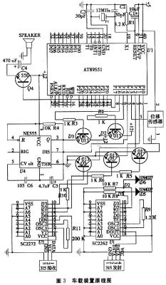 按下遙控器的SA時高亮度LED發(fā)光在黑暗時可作照明使用,同時高電輸入10腳編碼后發(fā)送到車載接收模塊。車載接收模塊收到信號經(jīng)解碼芯片解碼后在SC2272的11腳輸出一高電平送到單片機P1.1端口,經(jīng)內(nèi)部處理后,使揚聲器發(fā)出提示聲。